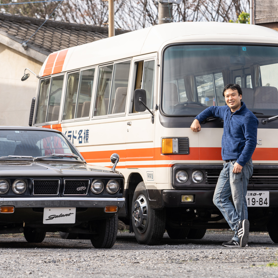 With a rumble of the engine and crunch of gravel, Kei Ogura maneuvers his six-meter classic FUSO Rosa bus from one corner of the small parking lot to the other. He winds down the window before stating, “I can’t take it onto the road because it’s not fully licensed yet. But we’re getting there.”
