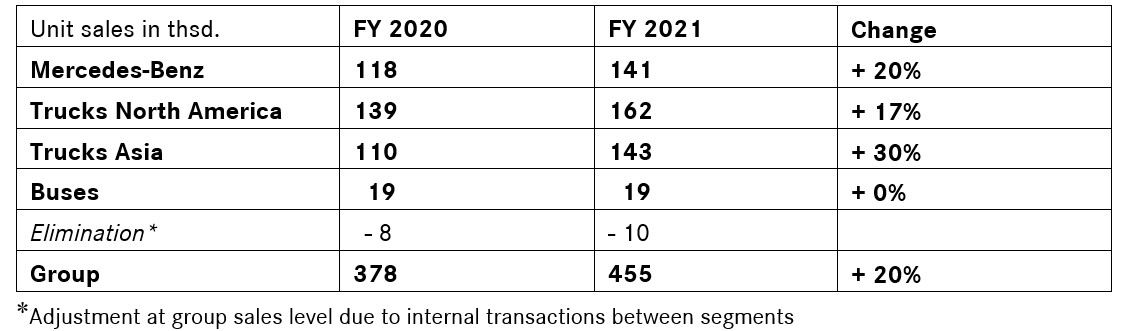 • Daimler Truck reports sales of approx. 455,000 units for 2021, 20% above prior year level