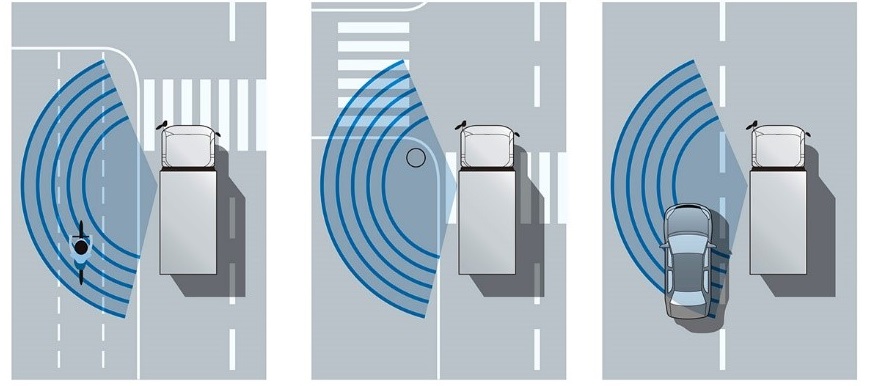 *Active Sideguard Assist 1.0 is a feature that is intended to support braking behavior that will mitigate the risk and damage of collisions with pedestrians or cyclists moving parallel to the vehicle. The feature should not be considered a preventative safeguard against every collision.