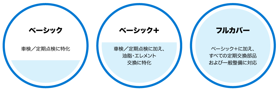 車検・点検サイクルに関係なく、毎月定額支払になり整備コストを平準化し、計画的な経営が図ることが可能となります。