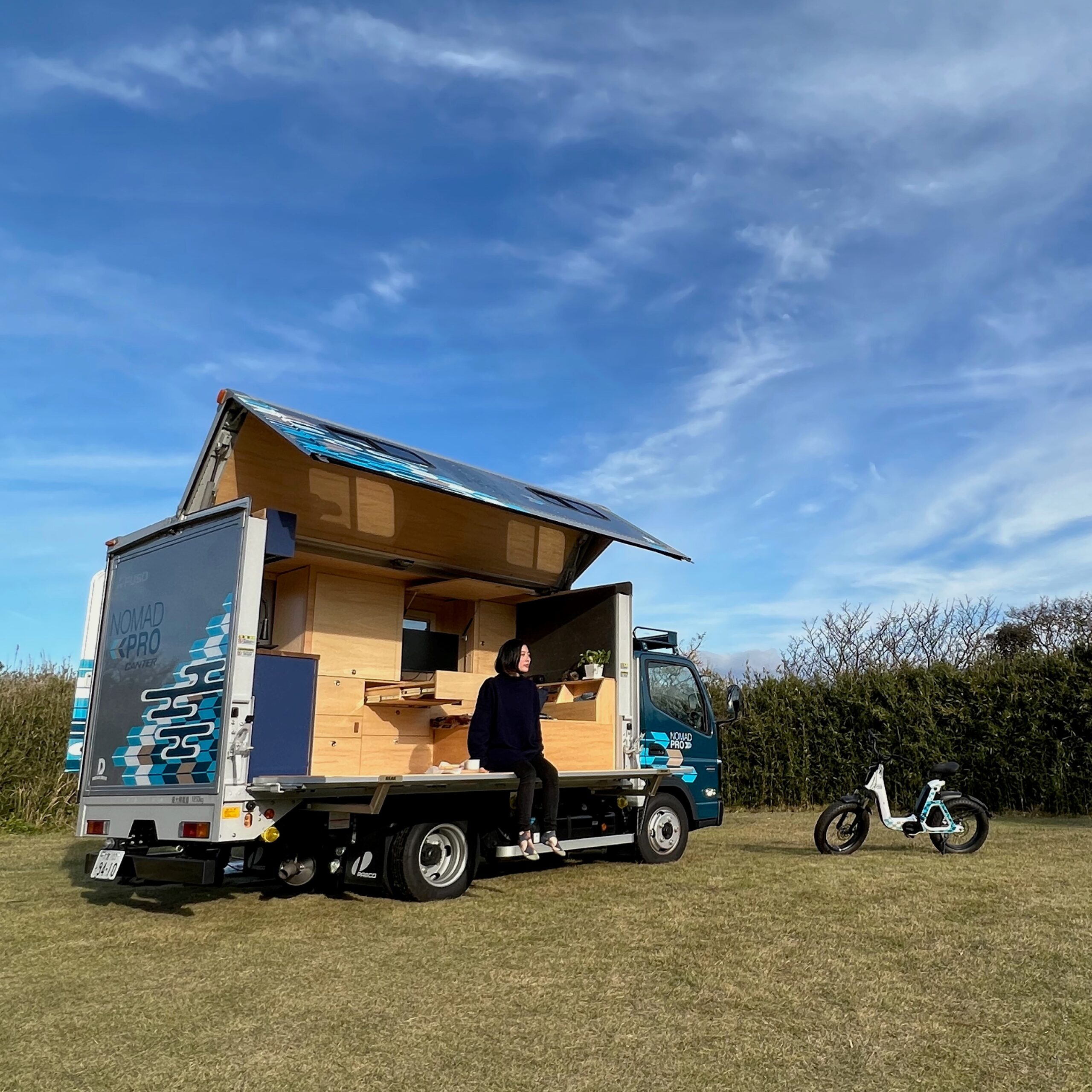 * NOMADPro CANTERは株式会社パブコ株式会社Dream Driveとの共同製作による、リモートワークの新しいスタイルを提案するための試作車で、CANTERの機能性を活かしたユニークなデザインが特徴です。