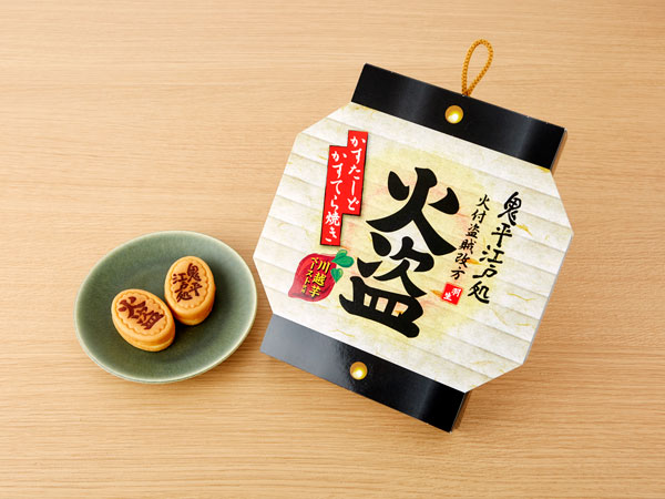 みやげ処屋台連では、「火付盗賊改方」の提灯パッケージが楽しいカステラ焼きを要チェック。
