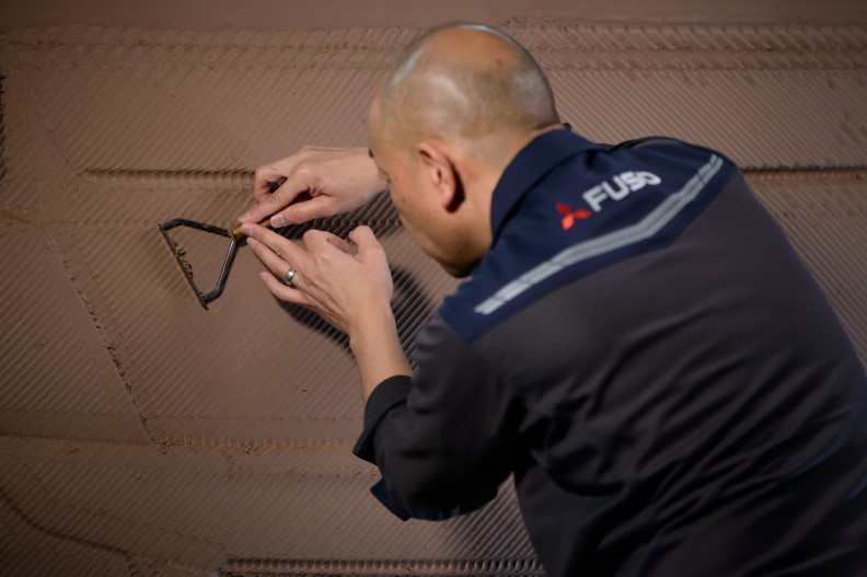MFTBCのフィジカルデザインは、デザインの細部へのこだわりと、ブランドの本質を表現することで、デジタルのみのプロセスとは一線を画しています。ふそう製品のデザインは単純に美しさだけを求めるものではなく、お客様へ届ける価値を最大化する、という理念を反映しています。乗用車に比べて、積載量、寸法など販売につながる厳しい規格が製品に適用される商用車では、デザイナーやモデラーの能力が発揮できる範囲は限られていますが、その限られた条件のなかでの差別化が、最終的に大きな違いを生み出します。クレイモデラーの一つひとつの判断には、彼らが手掛けるトラックやバスのあらゆる側面を最適化し、品質を高めるコミットメントが表れています。