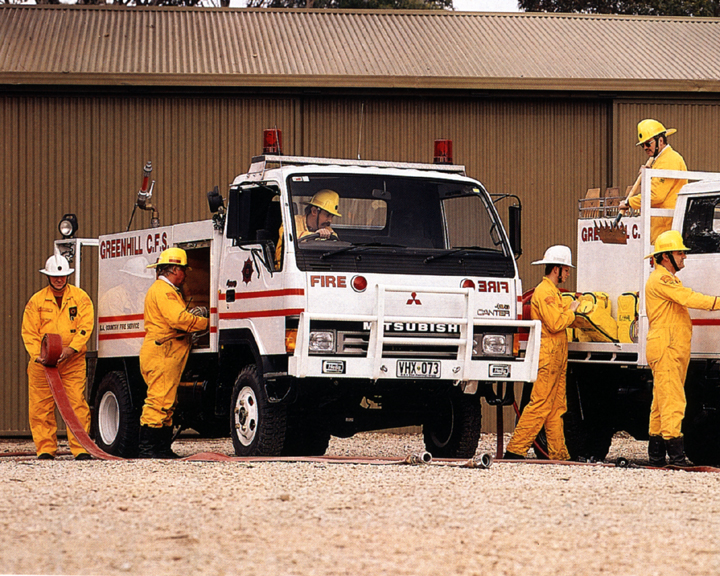 小型トラック「キャンター」のオーストラリアでの販売は、1971年より開始しました。オーストラリア市場向けに販売された車両総重量3.5トンで95馬力の当時のモデルは、経済的かつ頑丈で多様な用途に対応し、さまざまな顧客のニーズに応えるトラックとして活用されていました。発売から6年が経過した1989年には、ユーザーからのニーズに対応し、ワイドキャブのモデルをラインアップに追加しました。その後、1989年には4×4モデルを導入し、同国内の消防隊などのユーザーの間で頑丈さと敏しょう性を兼ね備えたモデルとして好評を博したほか、ニューサウスウェールズ州消防局でも活用されました。