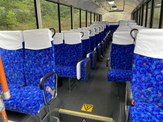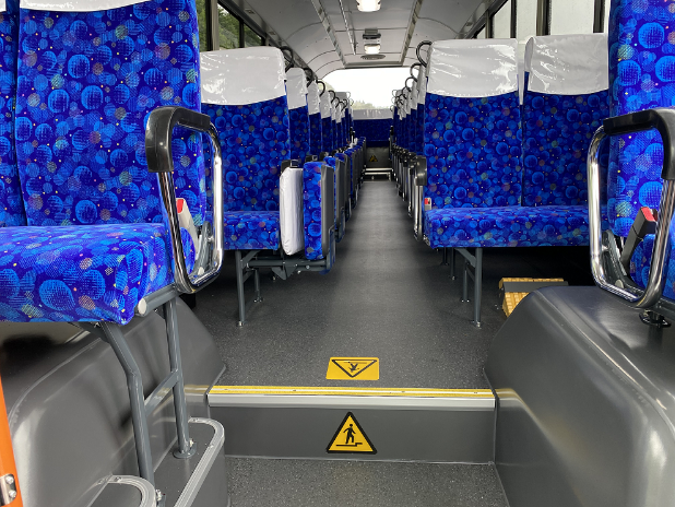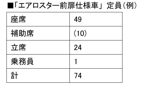 大型送迎バスの前扉仕様車は中扉をなくすことにより、座席数を増やすことでより多くのお客様を着座で快適に目的地まで送迎できるメリットがあります。通常の「エアロスター」ワンステップ車では座席数が最大で34席であるのに対し、前扉仕様車の場合には49席まで増やすことが出来ます。また、車前輪のタイヤ上に位置するフロントフェンダー以降の客席フロアをフラットに出来るため、車内移動が容易で、快適な車内空間を提供します。MFTBCは、お客様ならびに社会における様々なニーズに対応し、これからもお客様のビジネスをサポートしてまいります。