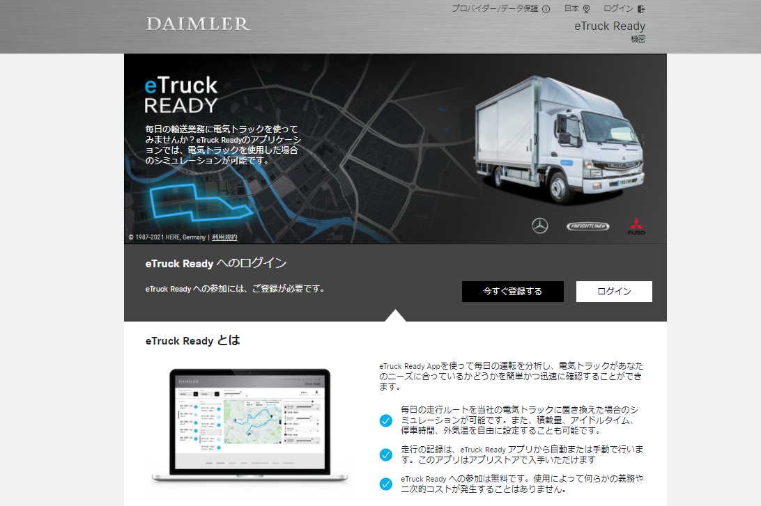 「eTruck Ready App」のトラック管理者用ウェブサイト