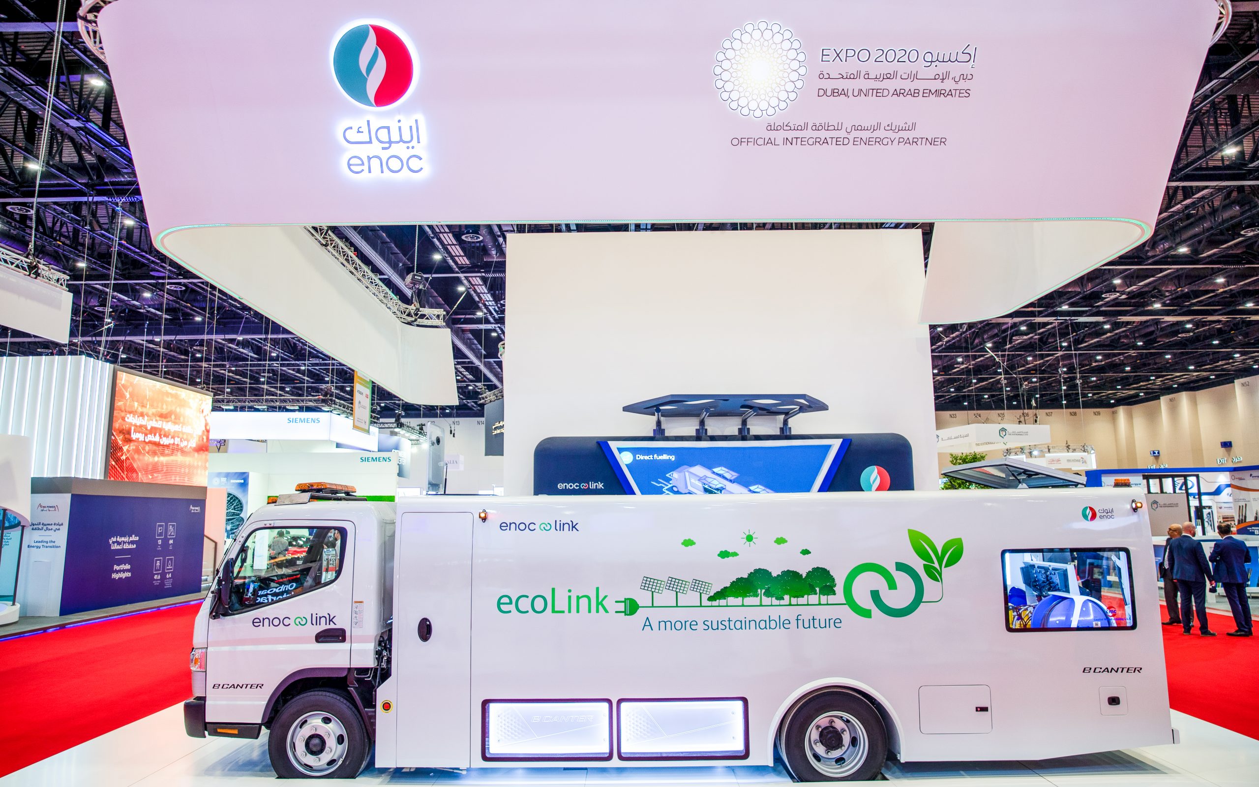 WETEXとドバイソーラーショーに続き、ENOCグループはExpo 2020 Dubaiのために設計した「未来のサービスステーション」でもeCanterを展示します。Expo 2020 Dubaiの公式総合エネルギーパートナーであるENOCグループは、最先端のサステナブルなデザインの燃料ステーションのコンセプトを打ち出しました。「未来のサービスステーション」のひさしは環境に優しい炭素繊維でできており、必要なエネルギーは敷地内に設置された風力発電機と太陽光発電パネルから供給されています。