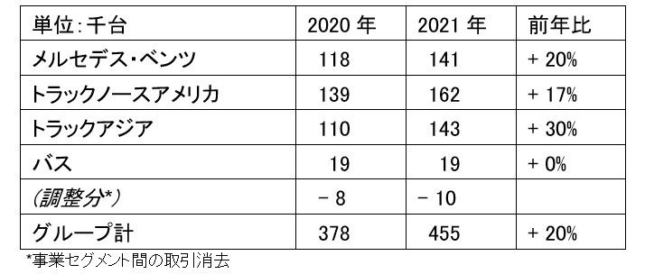 FUSOブランドを含むトラックアジア事業セグメントでは、2021年の販売台数は約14万3千台で、前年比30%増となりました。その他の事業セグメントも、それぞれ販売台数の目標を達成しました。