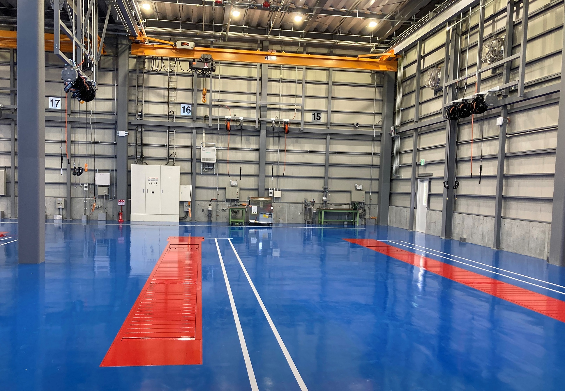 このたびのリニューアルでは、4ストールの整備工場を新設し、3分割フロアリフト1基、大型用2柱リフト2基を備えるほか、天井クレーンを2基設置し、車検からエンジン載せ替えといった大規模修理までに対応できる機能を備えました。さらに、お客様待合室を男女別に拡大改修し、メカニック向けの厚生施設、事務所なども刷新し、お客様と従業員の環境改善を図りました。