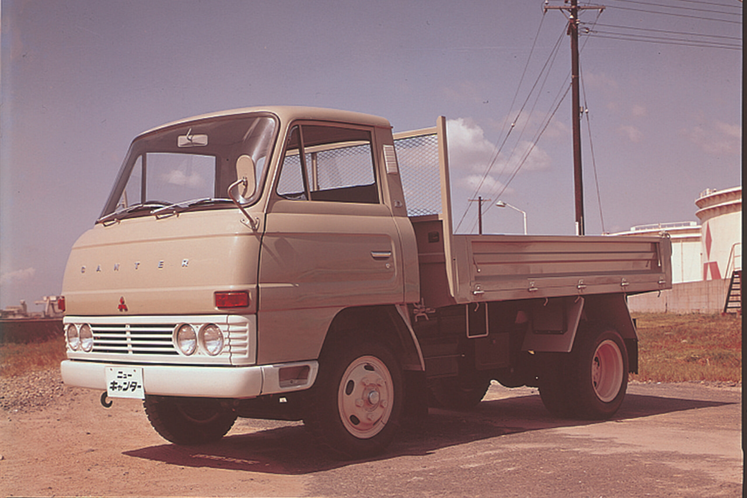 初代「キャンター」は1963年3月に小型トラックの分野にFUSOブランドとして初めて参入し、視界が広く運転操作が容易なキャブオーバータイプのT720型が発売されました。駿馬の健脚と軽快な走りをイメージし、英語で馬が駆け抜けることを意味する「キャンター」と名付けられた同車両は、優れた走行性能にくわえて経済性を兼ね備えた車として、クラス随一の評価を受けました。初代「キャンター」の発売後、1964年には首都高速道路が日本で開通し、貨物の高速輸送が可能になりました。道路整備に伴いトラックの高速化への開発が進んだことで、長距離輸送が日常となり、高出力エンジンの搭載も普及し、多くの荷物を高速で運ぶことが可能になりました。小回りの利く「キャンター」は、様々な用途での輸送で用いられることで、日本の輸送の効率化に貢献してきました。