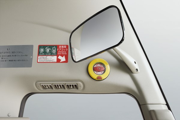 また、緊急時に自動ドアを手動で開けるための非常用解放コックを前扉の上部にも全車標準で設定し、安全性も高めました。万が一の緊急事態発生の際に、認識しやすく操作が容易な位置に非常用解放コックを取り付けることで、ドアを手動で開放して室外へスムーズに脱出できます。