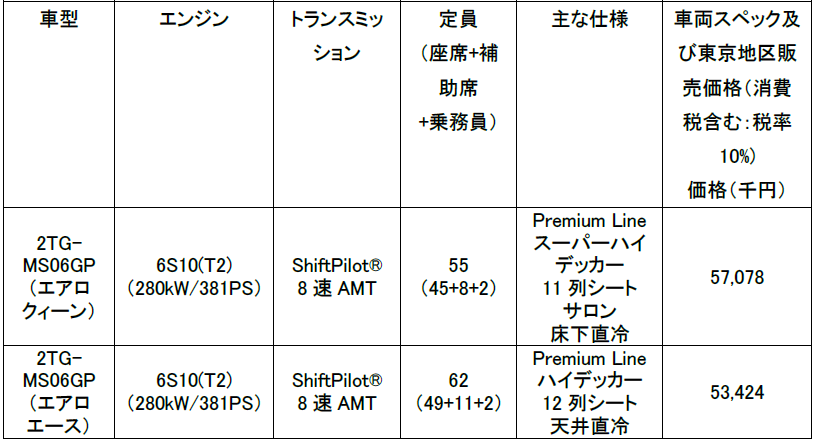 *2024年10月17日発表時、エアロクイーンの定員数を57名と誤った数値を掲載していました。正しくは55名です。
