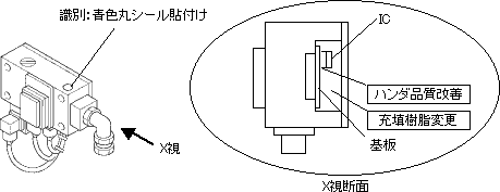 | 改善の内容 全車両、ガスバルブを対策品に交換する。 識別 改善済車両については、ガスバルブに青色丸シールを貼付ける。 |