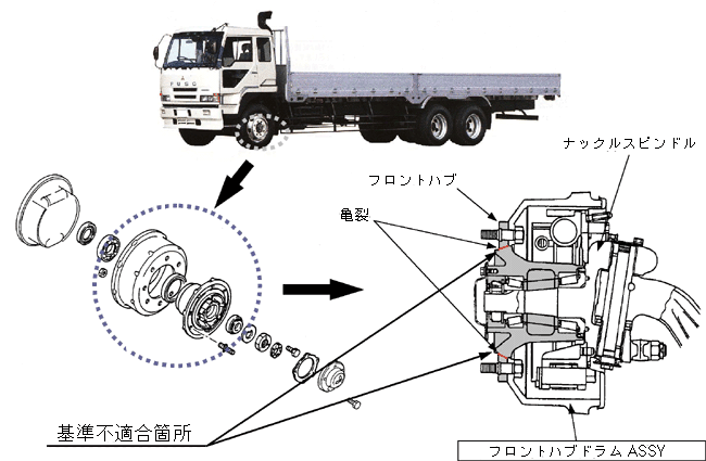 ふそうザ・グレートの走行装置(フロントハブ)のリコールについて