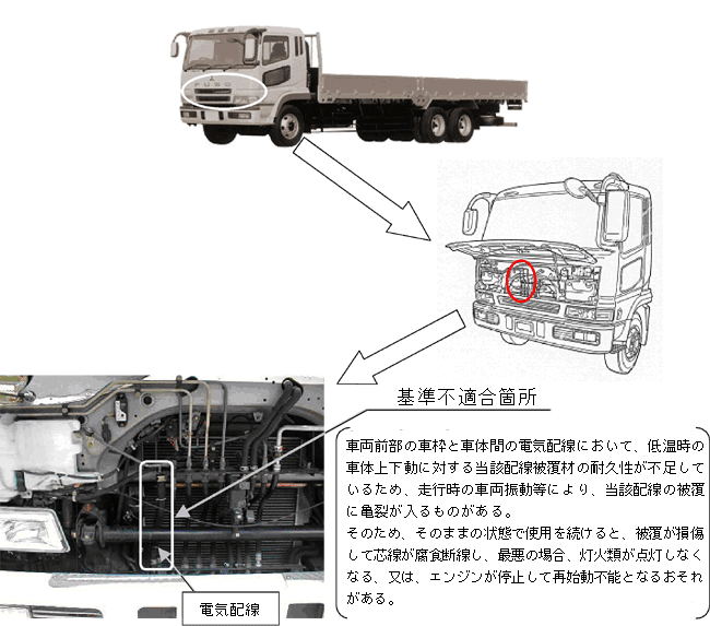 ふそうスーパーグレートの電気装置(キャブ前面ハーネス)のリコールについて