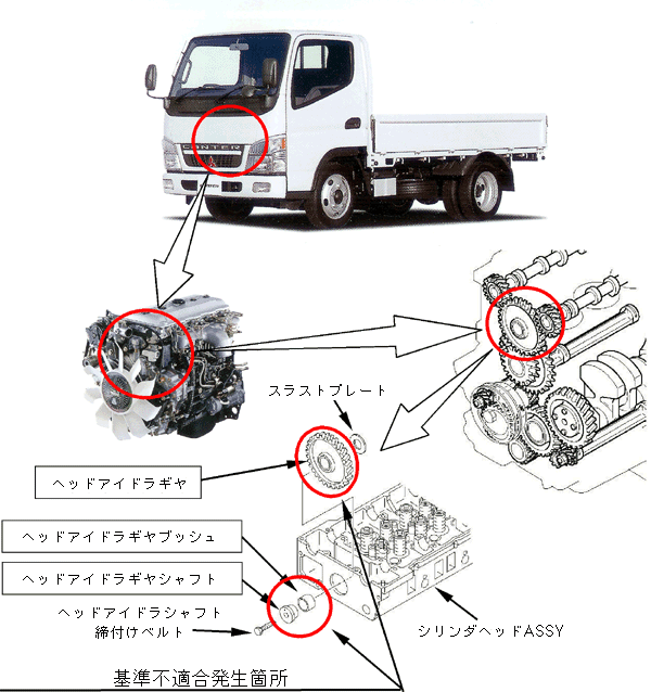 ふそうファイター、キャンター、エアロミディ、ローザの原動機のリコールについて