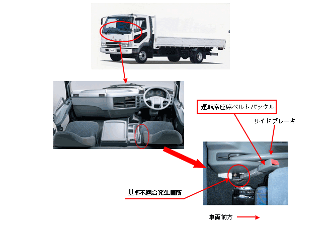 | ふそうファイターの座席ベルト(運転席座席ベルトバックル)について、平成18年3月8日に下記のリコールを国土交通省に届け出ました。ご愛用車の措置について、販売会社から早急にご連絡・ご相談をさせていただきますので、よろしくお願い申し上げます。 ユーザの皆様には大変ご迷惑をおかけいたしますことを、心よりお詫び申し上げます。 |
