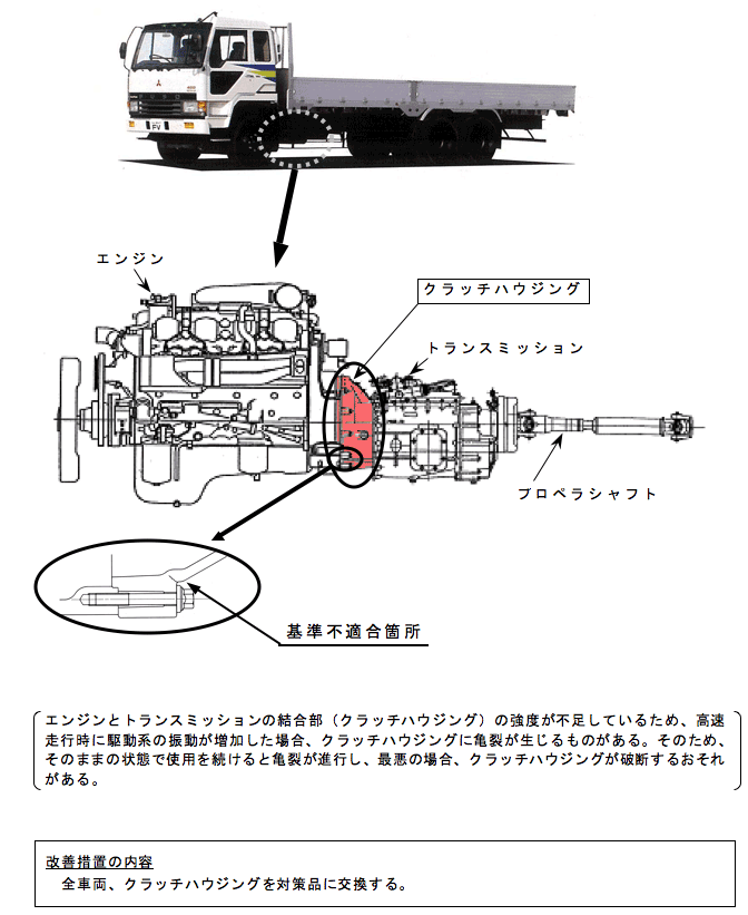 ふそう ザ・グレートの動力伝達装置(クラッチハウジング)のリコールについて