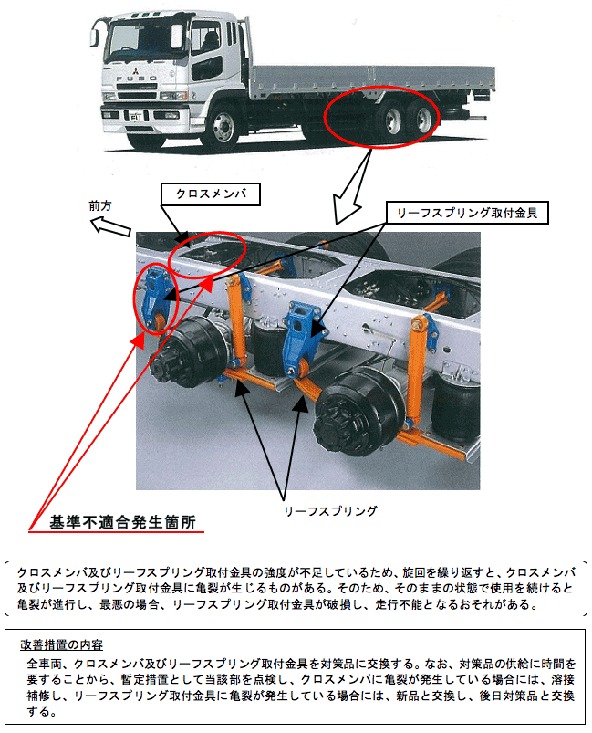 ふそうスーパーグレートの車枠(第4クロスメンバ)、緩衝装置(後輪トレーリングリーフ取付金具)のリコールについて
