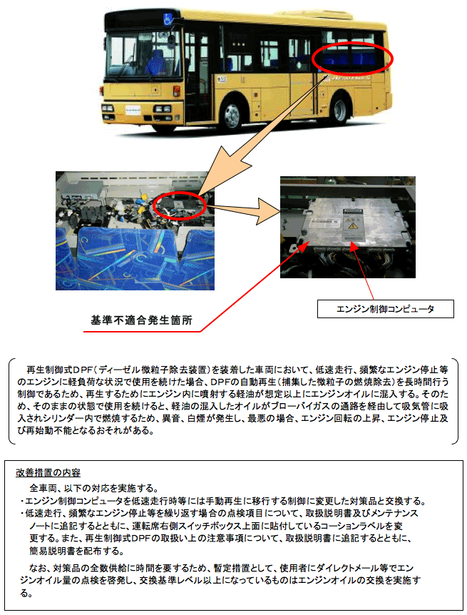 ふそう エアロミディ-Sの排出ガス発散防止装置(再生制御式DPF)のリコールについて