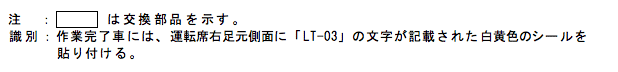 | (計1型式) | (計1車種) | (製作期間の全体の範囲) 平成10年1月21日~平成10年3月19日 |