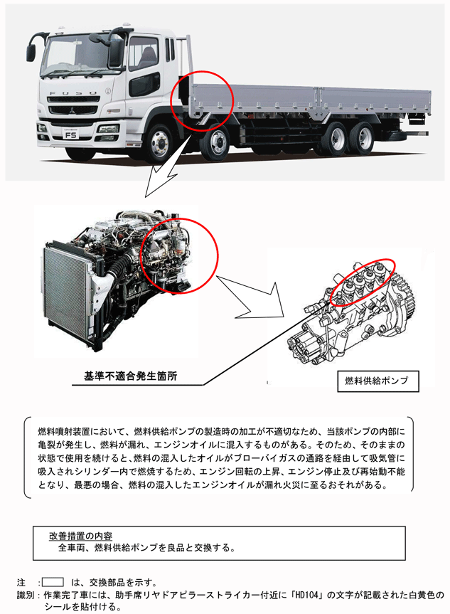 | 改善措置の内容 | 全車両、燃料供給ポンプを良品と交換する。 | ||