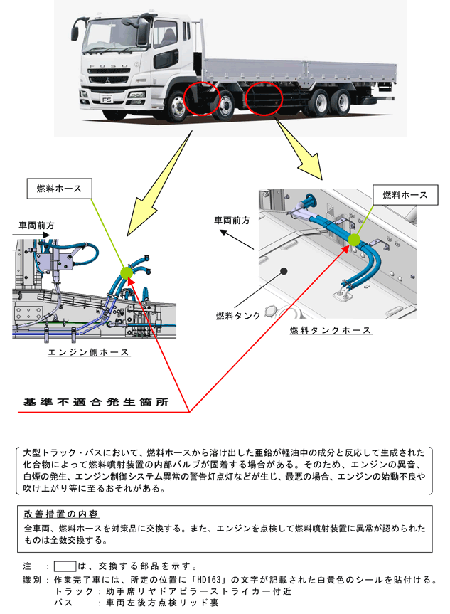 ふそうスーパーグレート、エアロエース、エアロクィーンの燃料装置(燃料ホース)のリコールについて