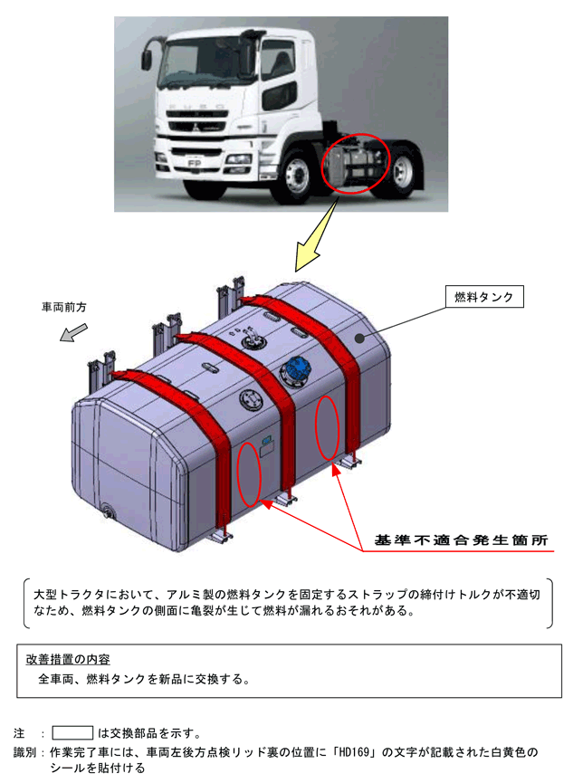 | 改善措置の内容 | 全車両、燃料タンクを新品に交換する。 | ||