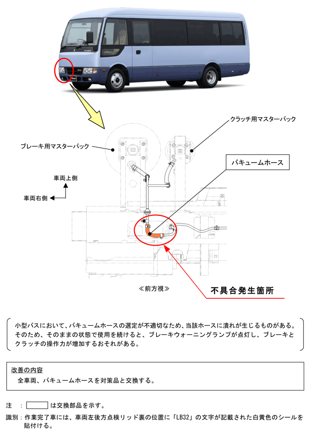 ふそうローザの制動装置(バキュームホース)について、平成25年2月21日に下記の改善対策を国土交通省に届け出ました。ご愛用車の措置について、販売会社から早急にご連絡・ご相談をさせていただきますので、よろしくお願い申し上げます。