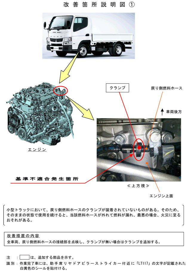 ふそうキャンター、ローザの原動機(燃料ホース)のリコールについて