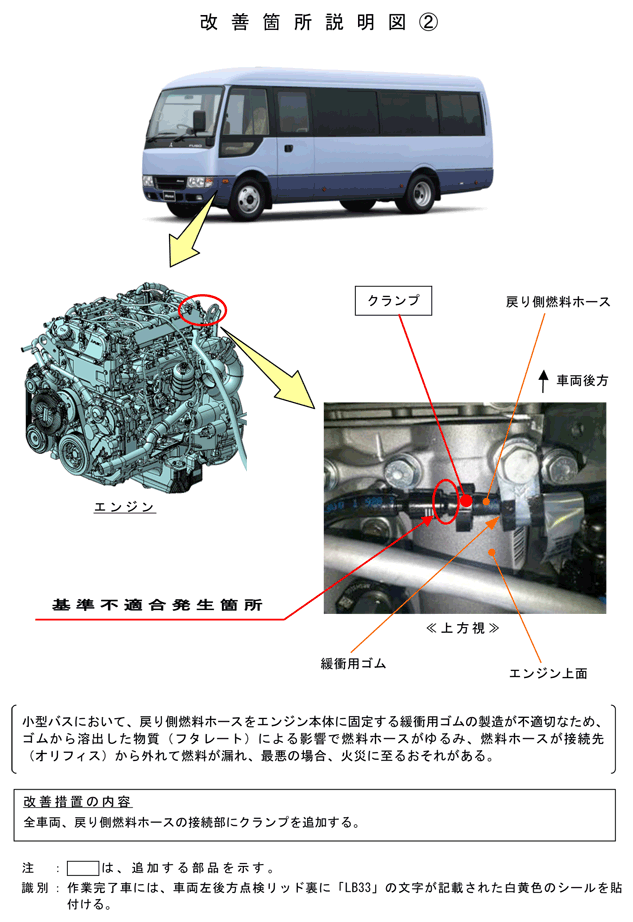 全車両、戻り側燃料ホースの接続部にクランプを追加する。