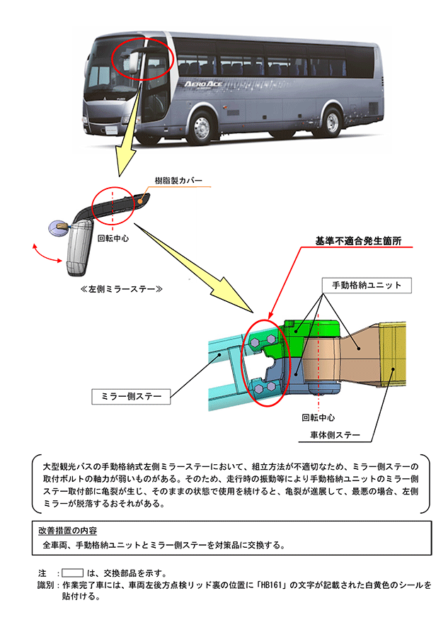 ふそう エアロエース、エアロクィーンの車体装置(左側ミラーステー)のリコールについて