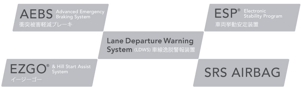 主要装備 ※青文字の装備は「エコライン」に対するグレードアップ装備です。