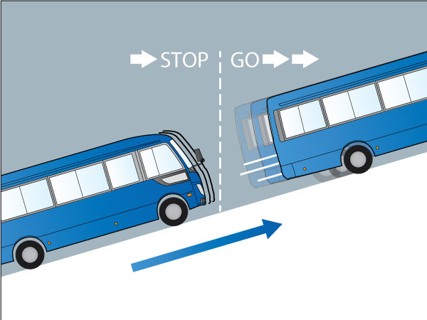 ※ 歩行者は動いている人のみ検知し、図の1st STEP、2nd STEPでの対応となります。